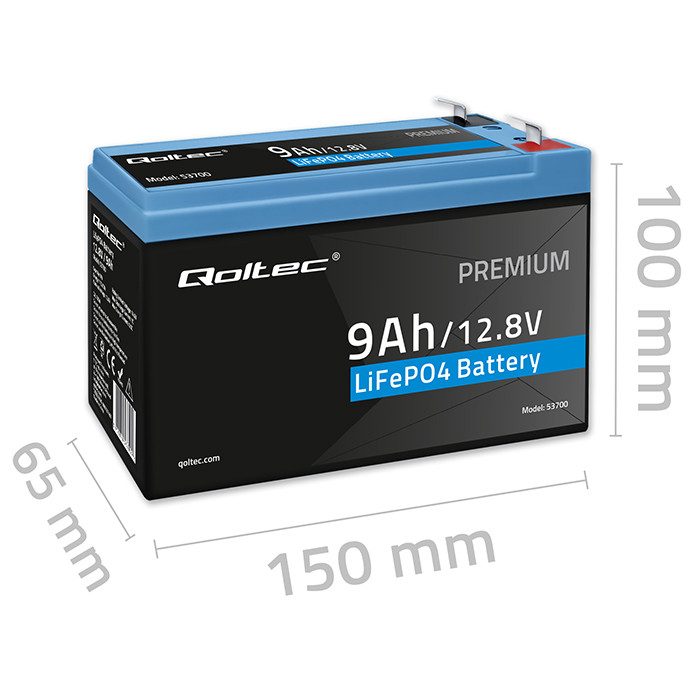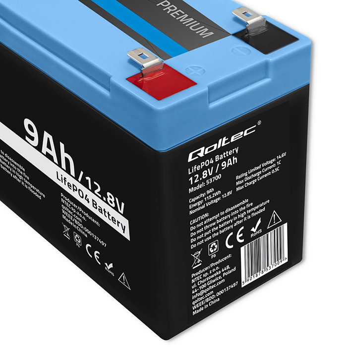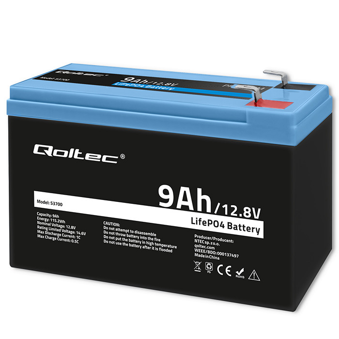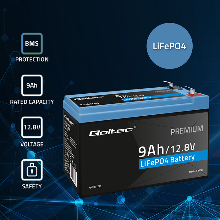Qoltec Akumulator LiFePO4 Litowo-Żelazowo-Fosforanowy | 12.8V | 9Ah | 115.2Wh | BMS