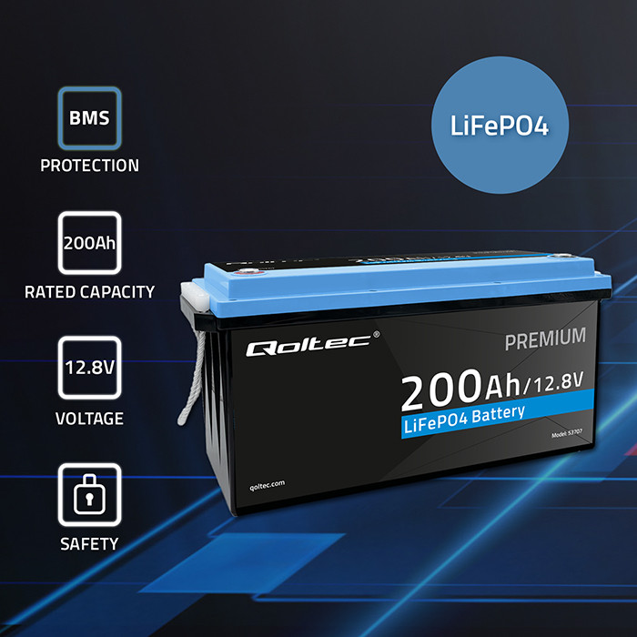 Qoltec Akumulator LiFePO4 Litowo-Żelazowo-Fosforanowy | 12.8V | 200Ah | 2560Wh | BMS