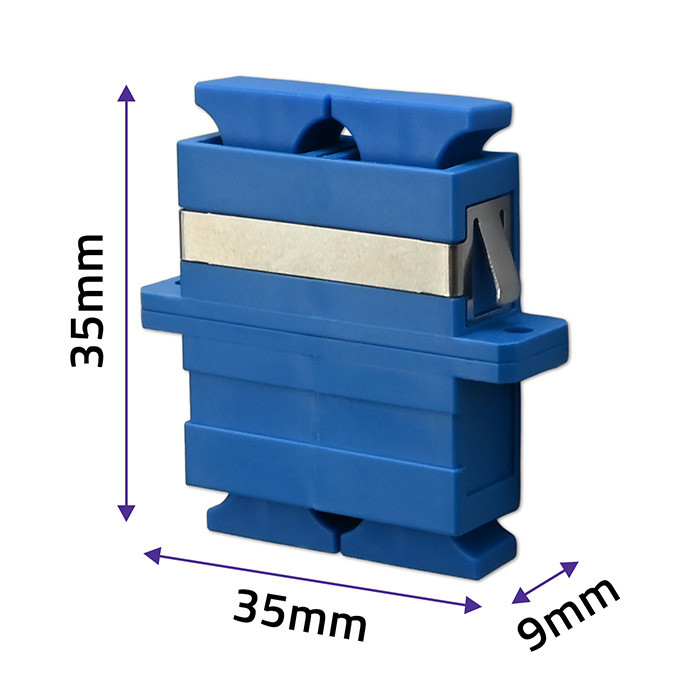 Adapter światłowodowy służy do połączenia światłowodów jednomodowych zakończonych złączami SC/UPC. Może być stosowany w światłowodach, które mają dużą prędkość transmisji danych. Adapter jest częścią toru światłowodowego, gwarantuje stabilność parametrów transmisyjnych, a znakomitej jakości ferrula ceramiczna, oszlifowana pod kątem 8 stopni, zapewnia mniejsze tłumienie sygnału odbitego, co powoduje korzystniejsze parametry transmisyjne w całym połączeniu. Zatrzaskowe uchwyty zapewniają wygodny montaż i demontaż. Kabel typu Duplex zastosowany w tym adapterze, używany jest w kanałach kablowych, szafach rozdzielczych, a także w rurach przy niskich obciążeniach mechanicznych.