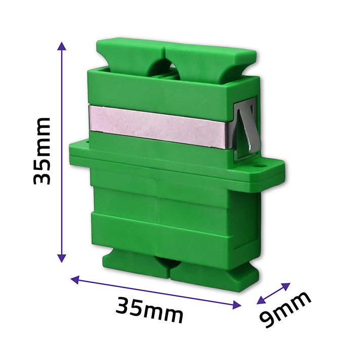 Adapter światłowodowy służy do połączenia światłowodów jednomodowych zakończonych złączami SC/APC. Może być stosowany w światłowodach, które mają dużą prędkość transmisji danych. Adapter jest częścią toru światłowodowego, gwarantuje stabilność parametrów transmisyjnych, a znakomitej jakości ferrula ceramiczna, oszlifowana pod kątem 8 stopni, zapewnia mniejsze tłumienie sygnału odbitego, co powoduje korzystniejsze parametry transmisyjne w całym połączeniu. Zatrzaskowe uchwyty zapewniają wygodny montaż i demontaż. Kabel typu Duplex zastosowany w tym adapterze, używany jest w kanałach kablowych, szafach rozdzielczych, a także w rurach przy niskich obciążeniach mechanicznych.