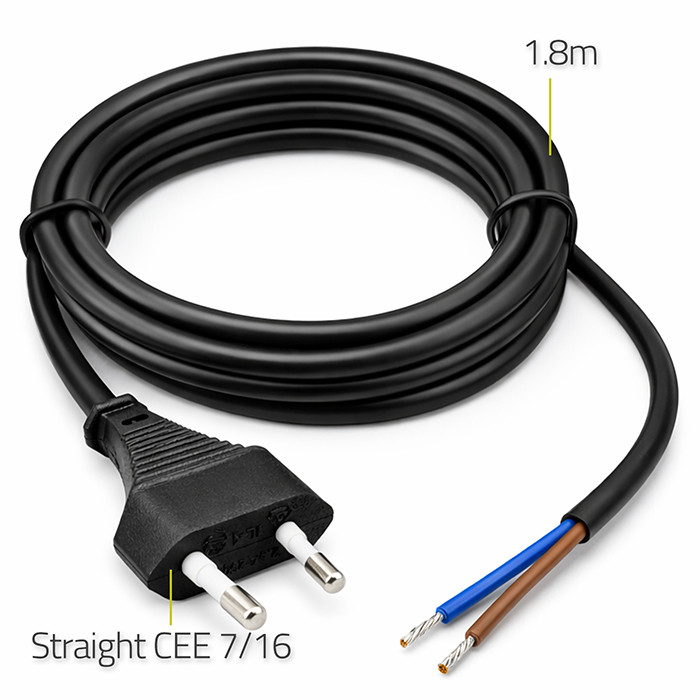 Funkcjonalny przewód zasilający do podłączania urządzeń elektrycznych do sieci 230V. Zakończony z jednej strony wtyczką CEE 7/16 (Euro), a z drugiej przygotowanymi do montażu wolnymi lutowanymi odizolowanymi przewodami. To doskonały wybór dla instalacji wymagających indywidualnego dopasowania przewodu. Zaufaj jakości, która gwarantuje pełną satysfakcję!