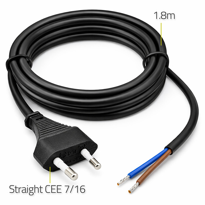 Funkcjonalny przewód zasilający do podłączania urządzeń elektrycznych do sieci 230V. Zakończony z jednej strony wtyczką CEE 7/16 (Euro), a z drugiej przygotowanymi do montażu wolnymi lutowanymi odizolowanymi przewodami. To doskonały wybór dla instalacji wymagających indywidualnego dopasowania przewodu. Zaufaj jakości, która gwarantuje pełną satysfakcję!
