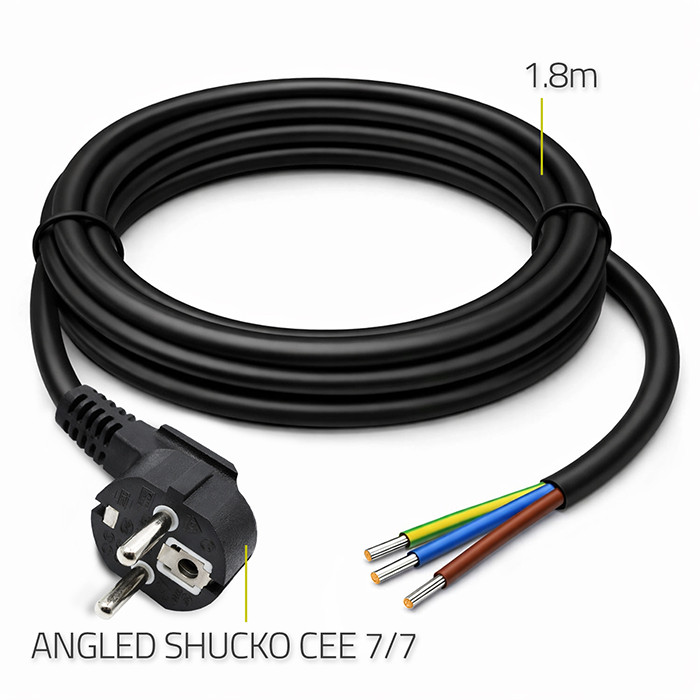 Funkcjonalny przewód zasilający do podłączania urządzeń elektrycznych do sieci 230V. Zakończony z jednej strony wtyczką CEE 7/7, a z drugiej przygotowanymi do montażu wolnymi lutowanymi odizolowanymi przewodami. To doskonały wybór dla instalacji wymagających indywidualnego dopasowania przewodu. Zaufaj jakości, która gwarantuje pełną satysfakcję!