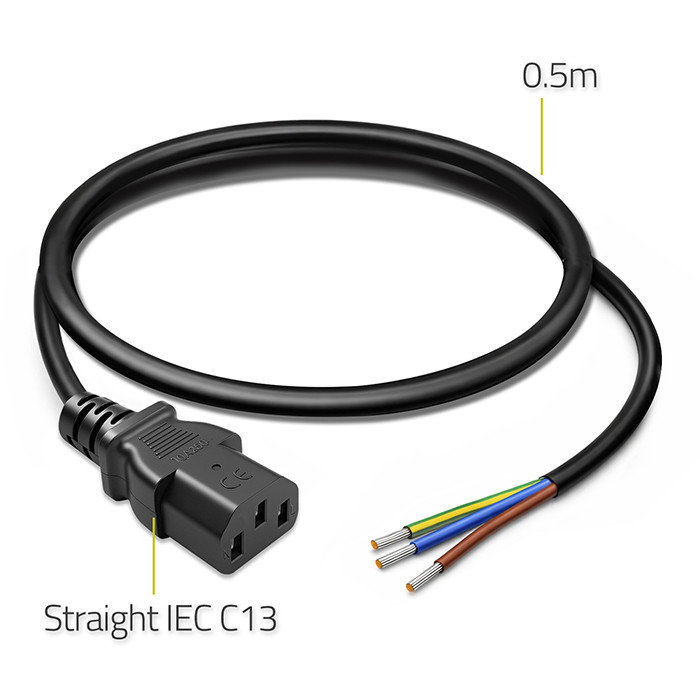 Kabel wyposażony jest w standardowy wtyk IEC C13 stosowany w urządzeniach IT (komputery, UPS, monitory, serwery), natomiast druga strona przewodu zakończona jest odizolowanymi żyłami, umożliwiającymi indywidualne podłączenie do instalacji elektrycznej lub wtyczki sieciowej. Rozwiązanie dedykowane jest dla instalatorów, serwisantów oraz użytkowników wymagających elastycznego dopasowania sposobu zasilania urządzeń – zarówno w domowym biurze, jak i w środowisku profesjonalnym.