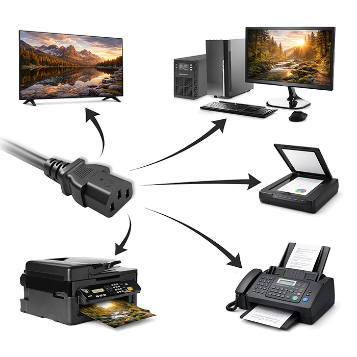 Kabel zasilający Schuko/C13 to idealne rozwiązanie do zasilania szerokiej gamy urządzeń posiadających gniazd C14, takich jak: