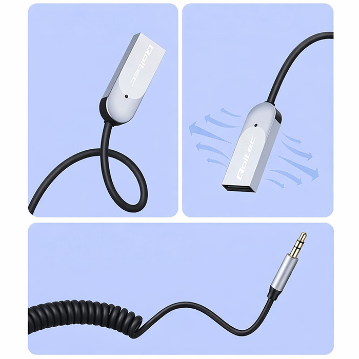 Qoltec Bezprzewodowy adapter odbiornik dźwięku Audio HiFi Home&Car| Bluetooth 6.0 | 2 x RCA | 1 x AUX MiniJack 3.5mm| USB | Mikrofon