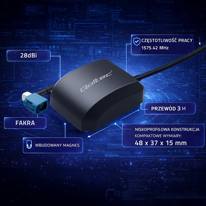 Qoltec Mobilna Antena GPS GLONASS z podstawą magnetyczną | dookólna | 28dBi | FAKRA