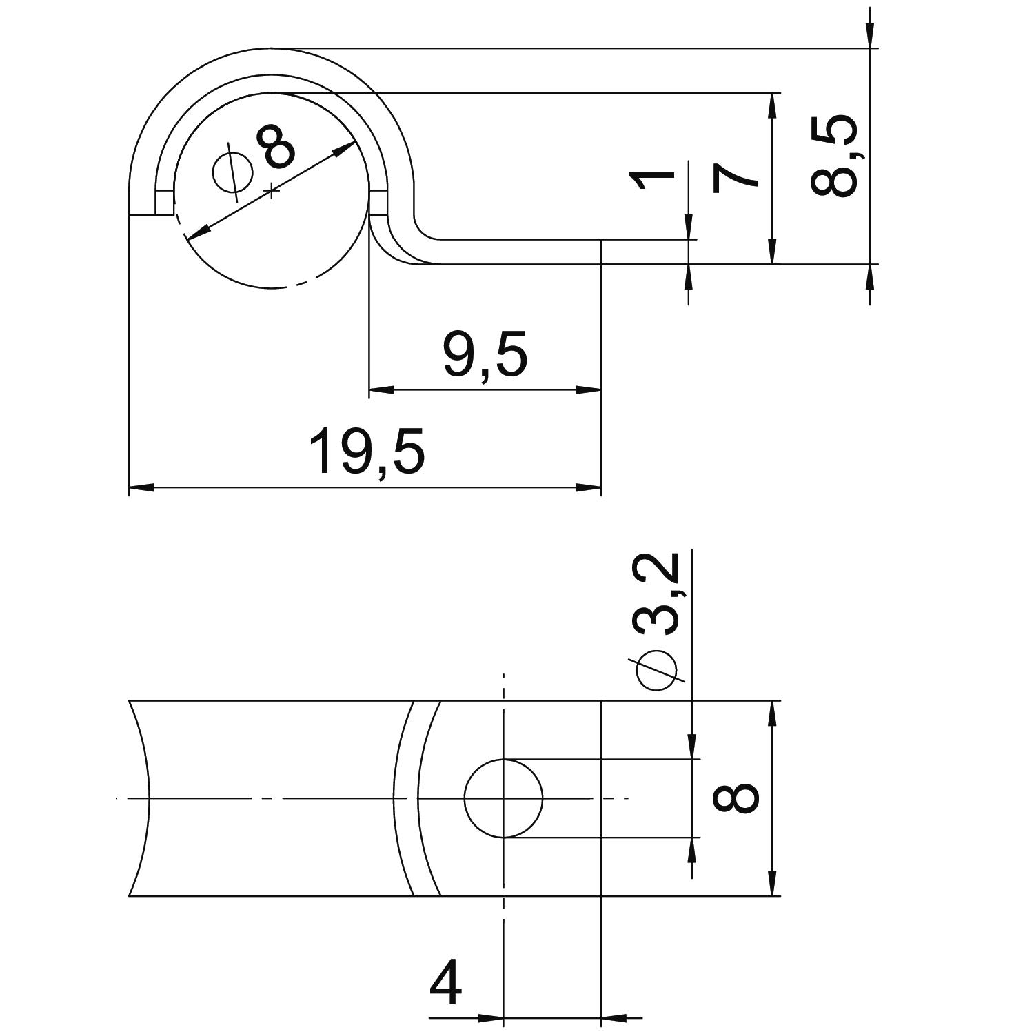 Wymiary według normy Siemens SN 78550 forma A, z mocno zaokrąglonymi krawędziami, przystosowana do szczególnie delikatnych przewodów.