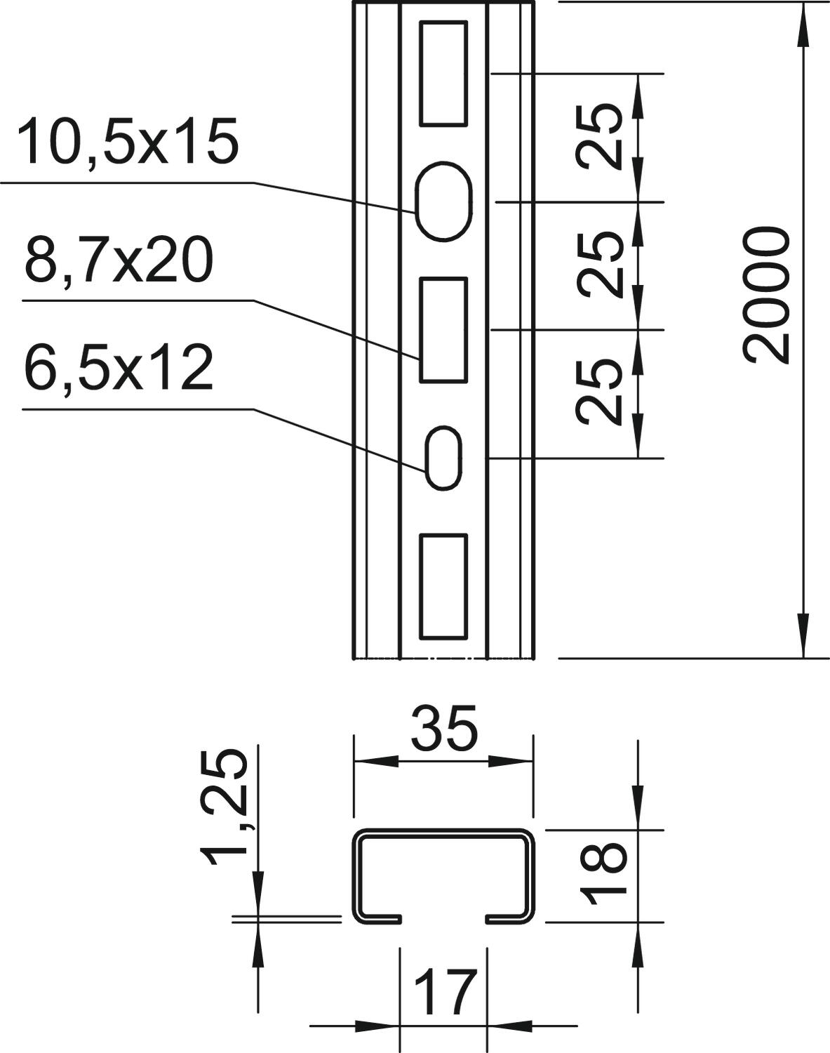 CML3518P2000FS Szyna profilowa perf.,szer. szczel. 17mm