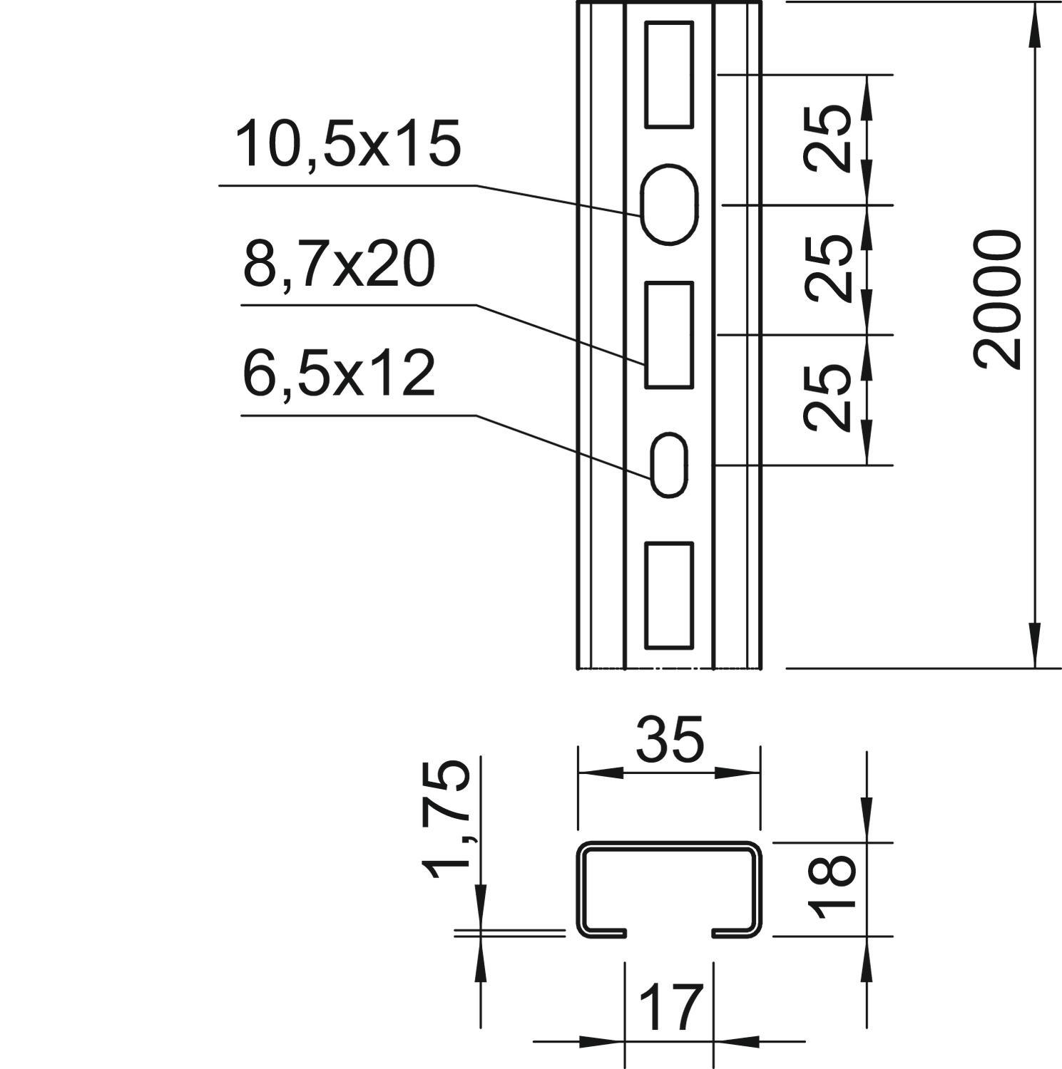 CMS3518P2000FT Szyna profilowa perf.,szer. szczel. 17mm
