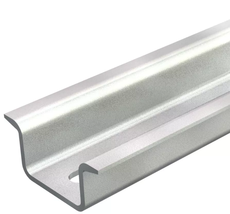 Szyna kołpakowa profilowana 35 x 15 mm, podobna do DIN EN 60715 (poprzednio DIN EN 50022), lecz materiał o grubości 1,5 mm.