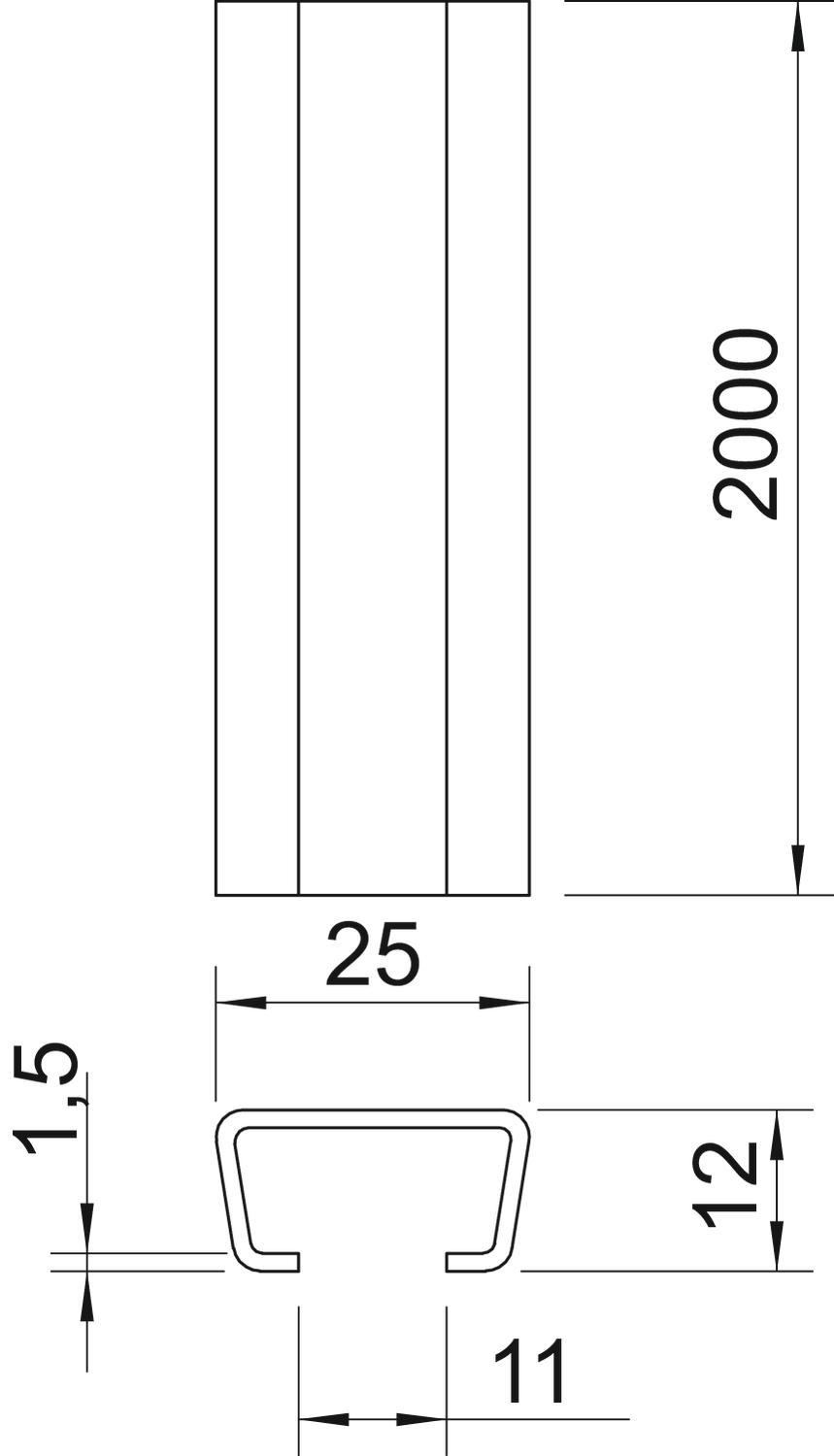 AL2512UP2000A2 Szyna profilowa pełny, szerok. szczeliny 11mm