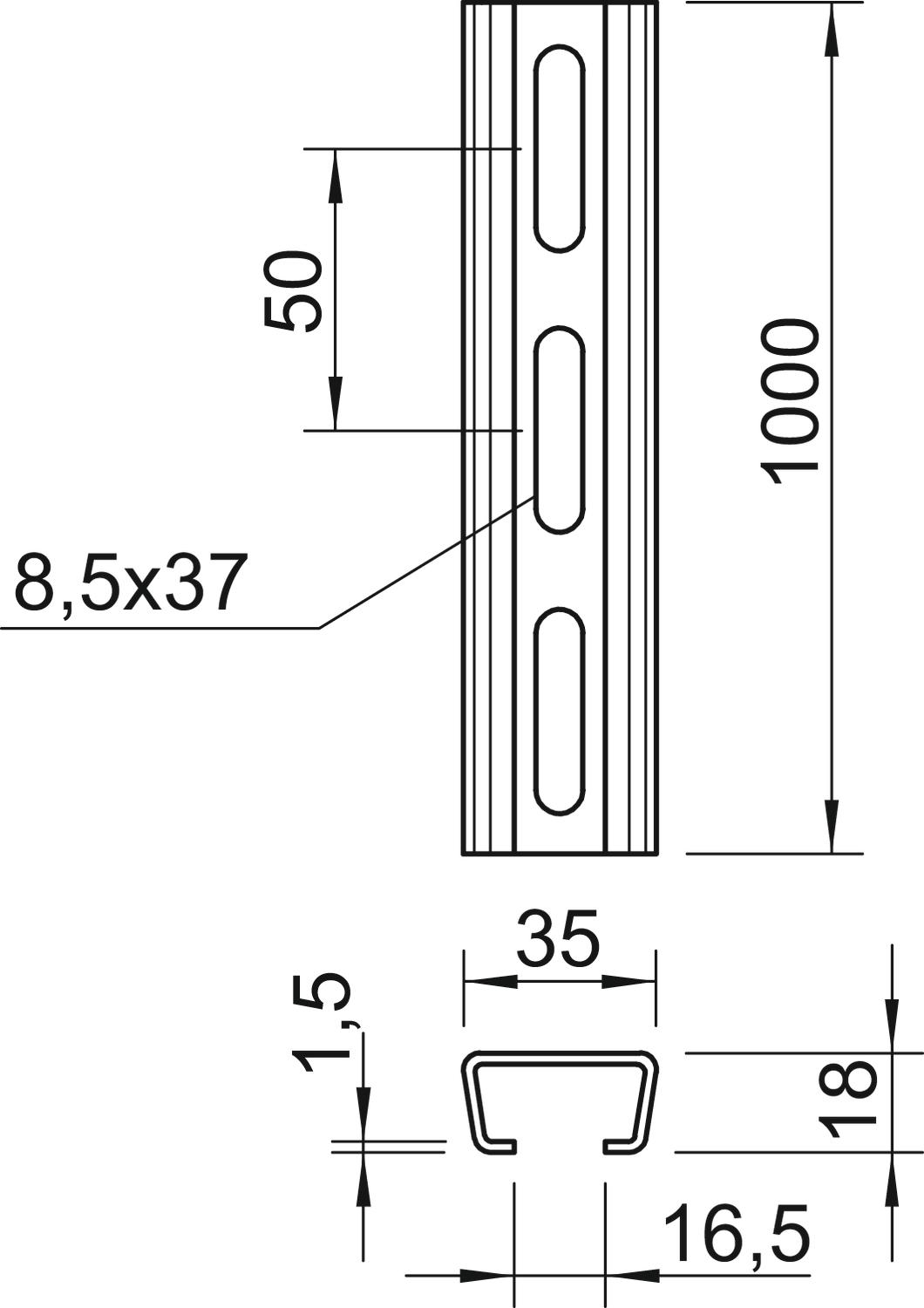 AML3518P1000FT Szyna profilowa perf., szer. szczeliny 16,5mm