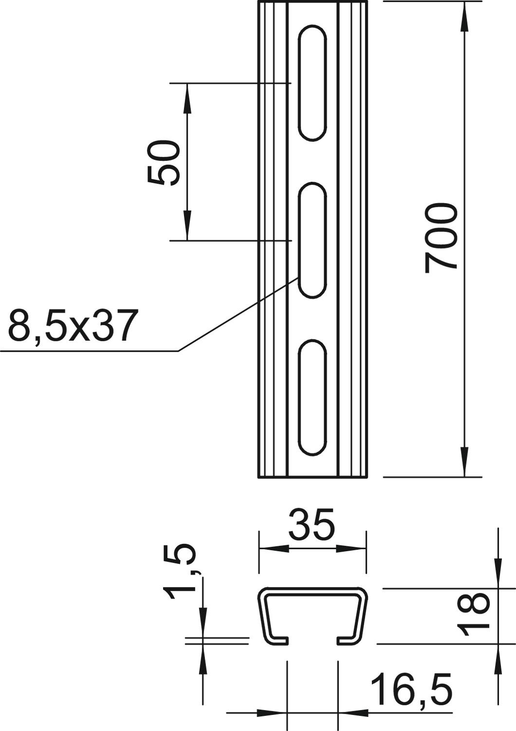 AML3518P0700FT Szyna profilowa perf., szer. szczeliny 16,5mm