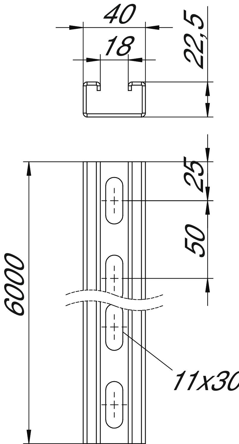 MS 22 L 6M FT Szyna profilowa perf.,szer. szczel. 18mm