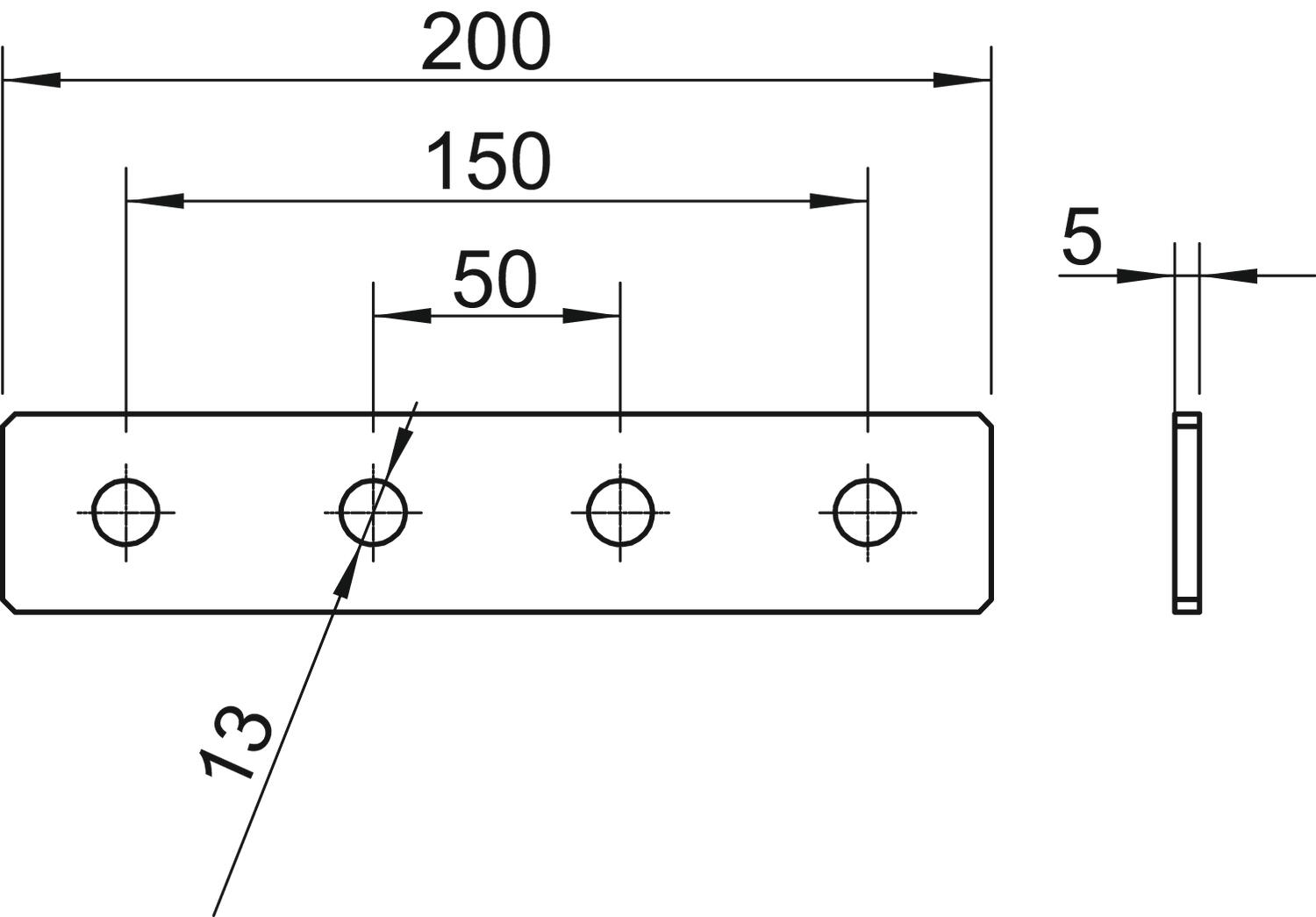 Płyta łącząca z 4 otworami do łączenia wzdłużnego szyn profilowych 41 x 41 mm i 41 x 21 mm.