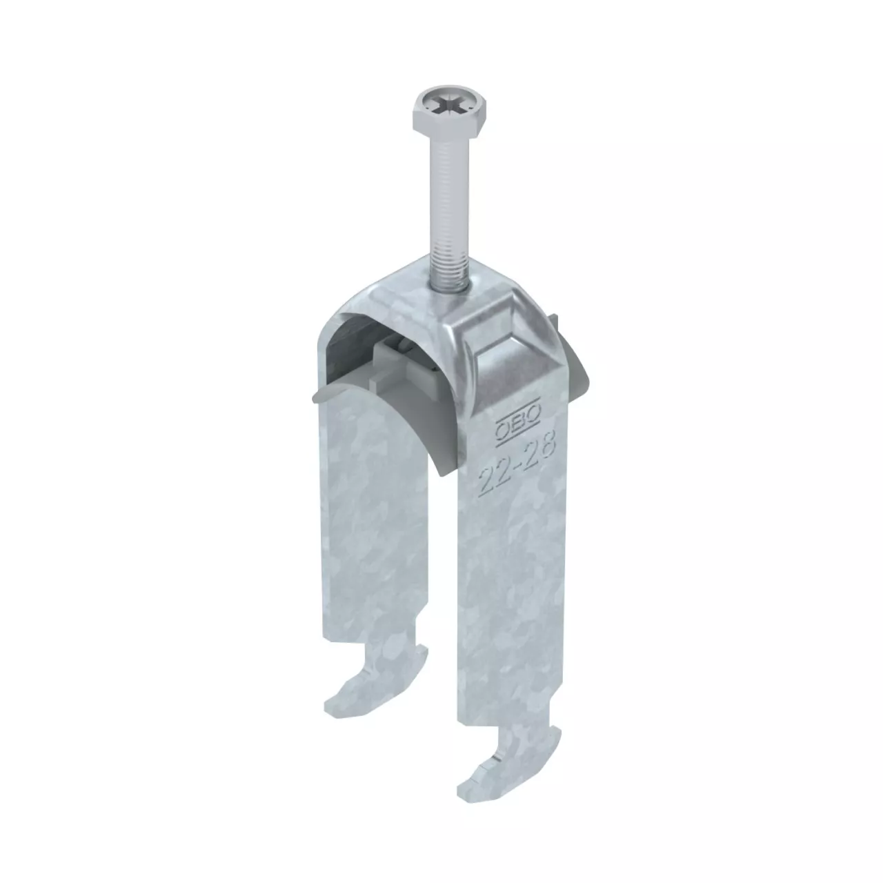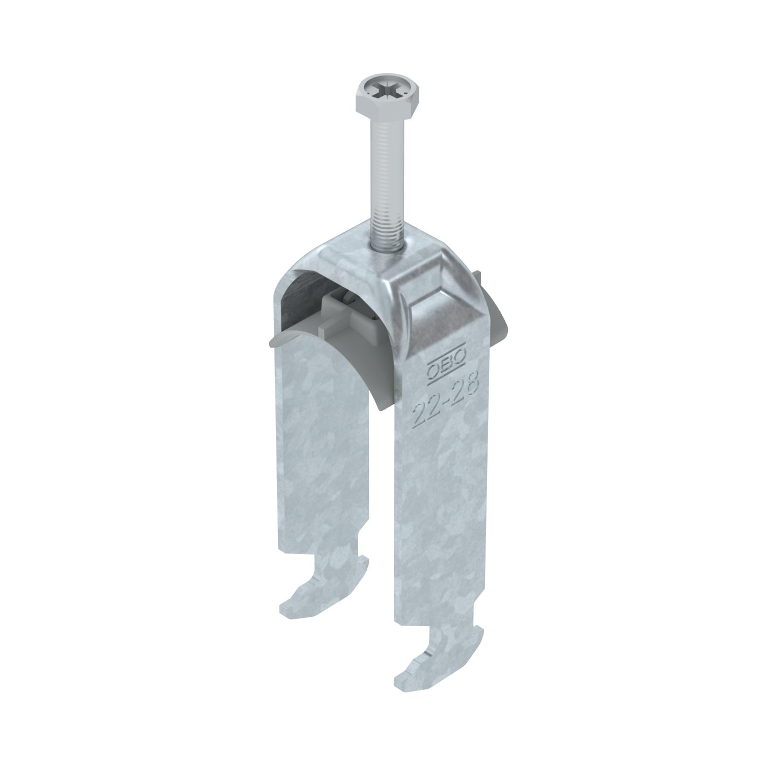 Obejma kabłąkowa ze stopką z łbem młotkowym, plastikowa wanienka dociskowa z polipropylenu Do pionowego i poziomego montażu 2 pojedynczych kabli na szynach o profilu C. Do szczeliny o szerokości 16 - 17 mm. Z gwintem jednoskokowym na wanience dociskowej, łeb sześciokątny uniwersalny SW10, z rowkiem i łbem krzyżakowym Nadaje się do montażu wewnątrz i na zewnątrz Paczki kabli powinny być oddzielone dodatkową wanienką dociskową Zalecamy użycie wanienki dociskowej