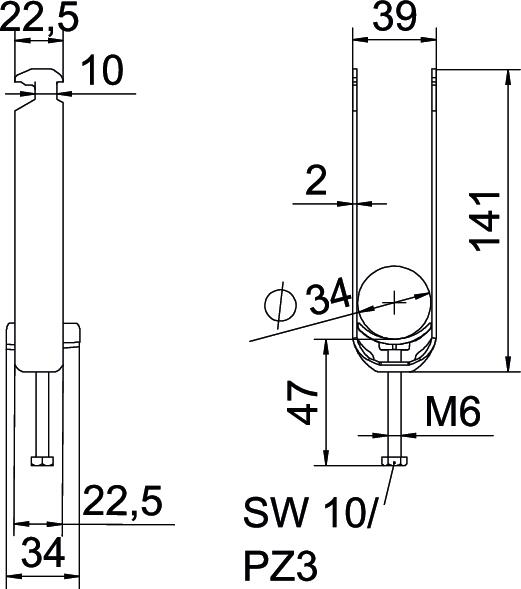 Obejma kabłąkowa ze stopką z łbem młotkowym, plastikowa wanienka dociskowa z polipropylenu Do pionowego i poziomego montażu 3 pojedynczych kabli na szynach o profilu C. Do szczeliny o szerokości 16 - 17 mm. Z gwintem jednoskokowym na wanience dociskowej, łeb sześciokątny uniwersalny SW10, z rowkiem i łbem krzyżakowym Nadaje się do montażu wewnątrz i na zewnątrz Paczki kabli powinny być oddzielone dodatkową wanienką dociskową Zalecamy użycie wanienki dociskowej