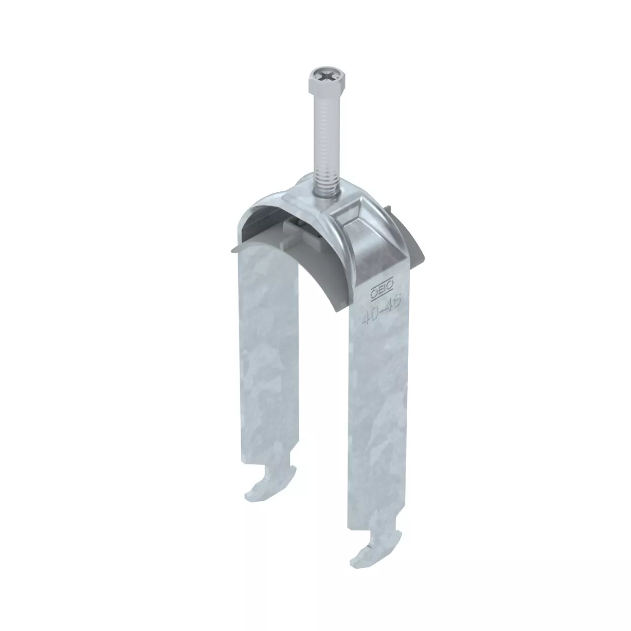 Obejma kabłąkowa ze stopką z łbem młotkowym, plastikowa wanienka dociskowa z polipropylenu Do pionowego i poziomego montażu 2 pojedynczych kabli na szynach o profilu C. Do szczeliny o szerokości 16 - 17 mm. Z gwintem jednoskokowym na wanience dociskowej, łeb sześciokątny uniwersalny SW10, z rowkiem i łbem krzyżakowym Nadaje się do montażu wewnątrz i na zewnątrz Paczki kabli powinny być oddzielone dodatkową wanienką dociskową Zalecamy użycie wanienki dociskowej