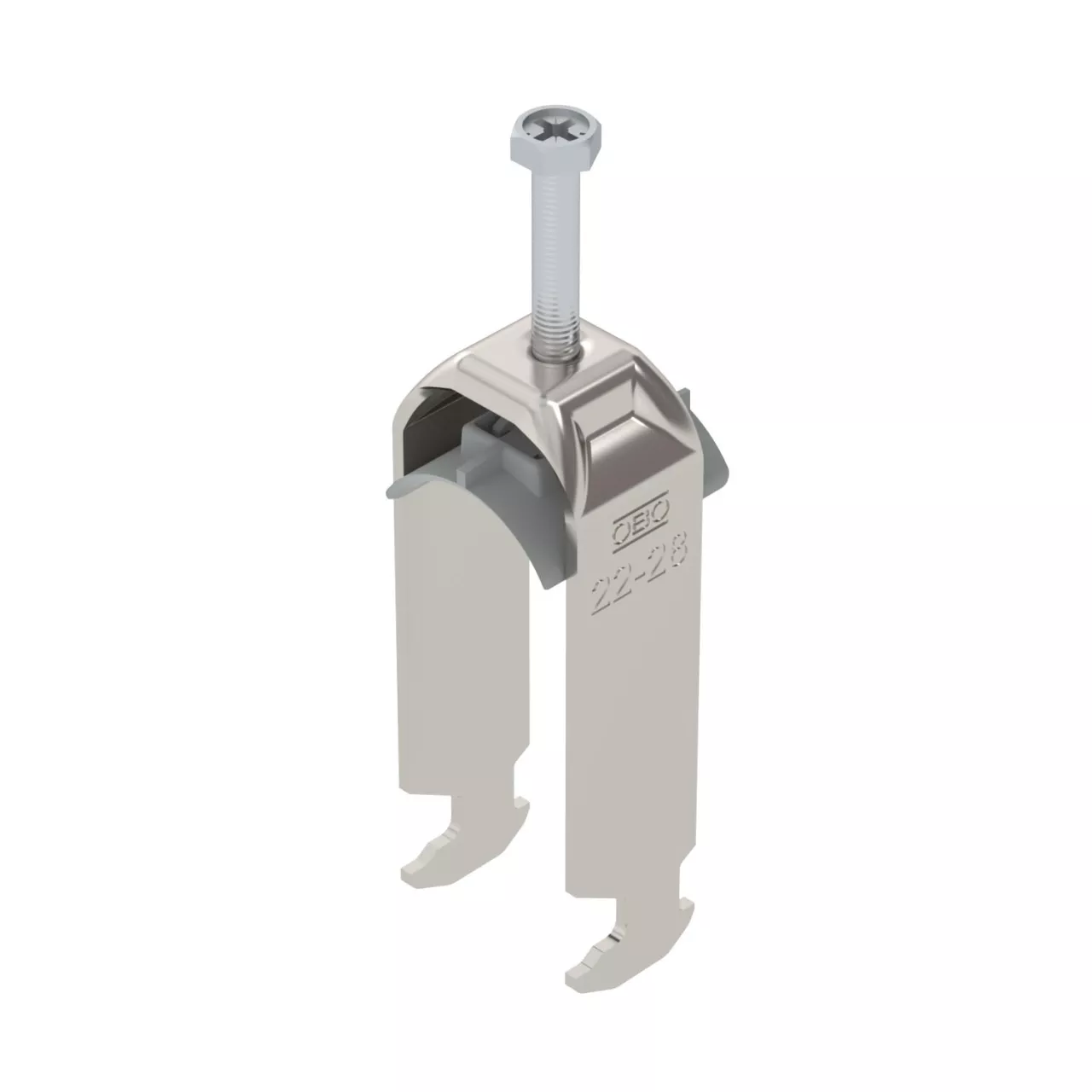 Obejma kabłąkowa ze stopką z łbem młotkowym, plastikowa wanienka dociskowa z polipropylenu Do pionowego i poziomego montażu 2 pojedynczych kabli na szynach o profilu C. Do szczeliny o szerokości 16 - 17 mm. Z gwintem jednoskokowym na wanience dociskowej, łeb sześciokątny uniwersalny SW10, z rowkiem i łbem krzyżakowym Nadaje się do montażu wewnątrz i na zewnątrz Paczki kabli powinny być oddzielone dodatkową wanienką dociskową Zalecamy użycie wanienki dociskowej