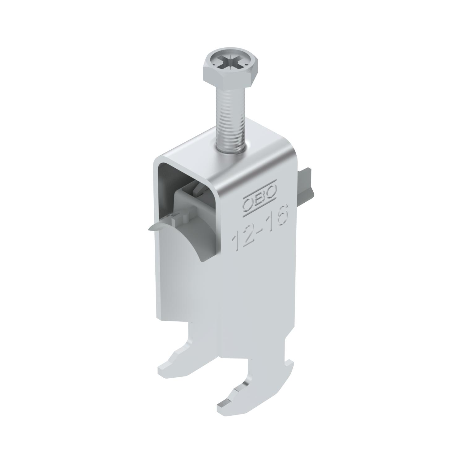 Obejma kabłąkowa ze stopką z łbem młotkowym, plastikowa wanienka dociskowa z polipropylenu Do pionowego i poziomego montażu 2 pojedynczych kabli na szynach o profilu C. Do szczeliny o szerokości 16 - 17 mm. Z gwintem jednoskokowym na wanience dociskowej, łeb sześciokątny uniwersalny SW10, z rowkiem i łbem krzyżakowym Nadaje się do montażu wewnątrz i na zewnątrz Paczki kabli powinny być oddzielone dodatkową wanienką dociskową Zalecamy użycie wanienki dociskowej