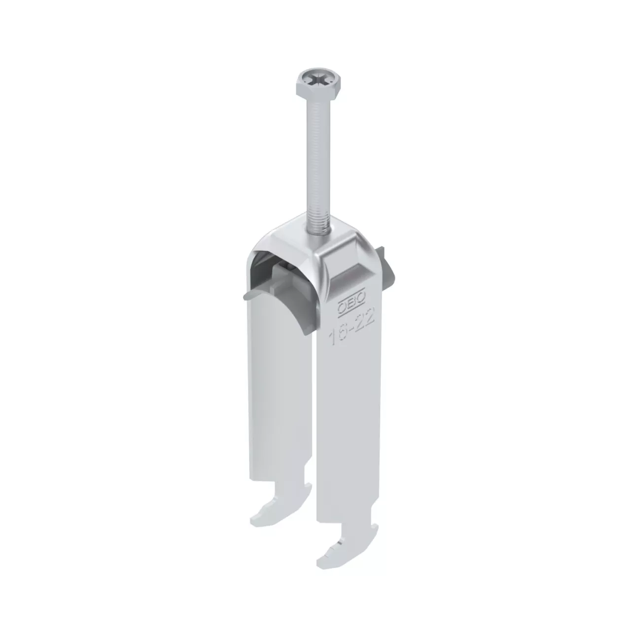 Obejma kabłąkowa ze stopką z łbem młotkowym, plastikowa wanienka dociskowa z polipropylenu Do pionowego i poziomego montażu 3 pojedynczych kabli na szynach o profilu C. Do szczeliny o szerokości 16 - 17 mm. Z gwintem jednoskokowym na wanience dociskowej, łeb sześciokątny uniwersalny SW10, z rowkiem i łbem krzyżakowym Nadaje się do montażu wewnątrz i na zewnątrz Paczki kabli powinny być oddzielone dodatkową wanienką dociskową Zalecamy użycie wanienki dociskowej