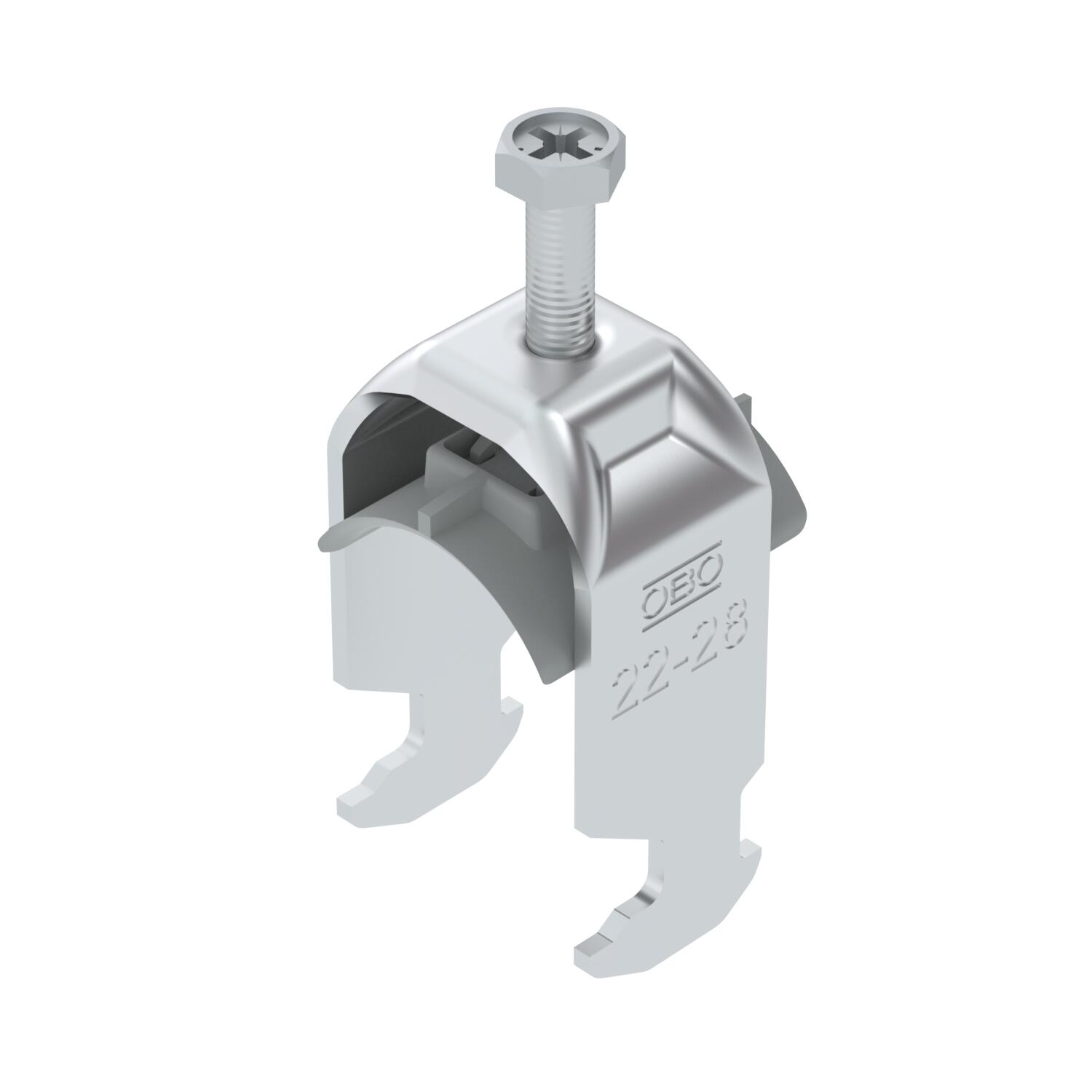 Obejma kabłąkowa ze stopką z łbem młotkowym, plastikowa wanienka dociskowa z polipropylenu Do pionowego i poziomego montażu pojedynczego kabla na szynie o profilu C. Do szczeliny o szerokości 16 - 17 mm. Z gwintem jednoskokowym na wanience dociskowej, łeb sześciokątny uniwersalny SW10, z rowkiem i łbem krzyżakowym Nadaje się do montażu wewnątrz i na zewnątrz Zalecamy użycie wanienki dociskowej