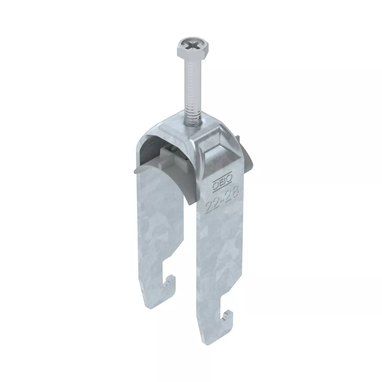 Obejma kabłąkowa plastikowa ze stopką w kształcie U, wanienka dociskowa wykonana z polipropylenu. Do pionowego i poziomego montażu 2 pojedynczych kabli na szynach o profilu C. Szerokość szczeliny 18-22 mm Z gwintem jednoskokowym na wanience dociskowej, łeb sześciokątny uniwersalny SW10, z rowkiem i łbem krzyżakowym Nadaje się do montażu wewnątrz i na zewnątrz Paczki kabli powinny być oddzielone dodatkową wanienką dociskową Zalecamy użycie wanienki dociskowej