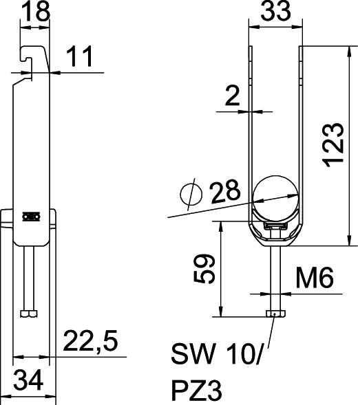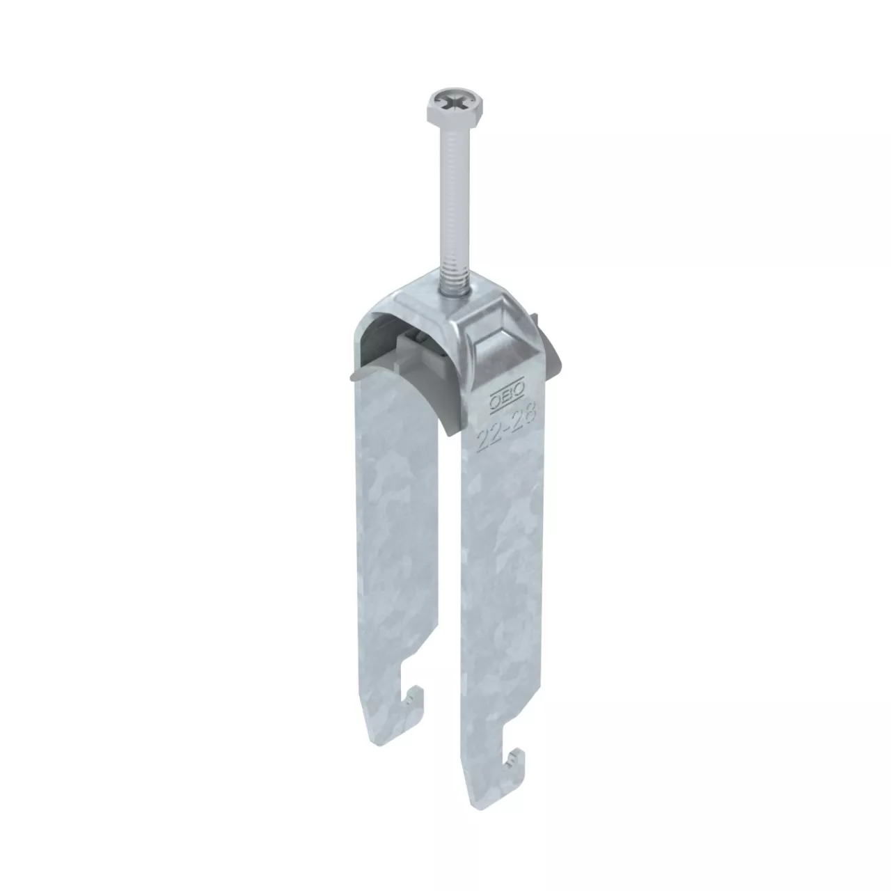 Obejma kabłąkowa plastikowa ze stopką w kształcie U, wanienka dociskowa wykonana z polipropylenu. Do pionowego i poziomego montażu 3 pojedynczych kabli na szynach o profilu C. Szerokość szczeliny 18-22 mm Z gwintem jednoskokowym na wanience dociskowej, łeb sześciokątny uniwersalny SW10, z rowkiem i łbem krzyżakowym Nadaje się do montażu wewnątrz i na zewnątrz Paczki kabli powinny być oddzielone dodatkową wanienką dociskową Zalecamy użycie wanienki dociskowej