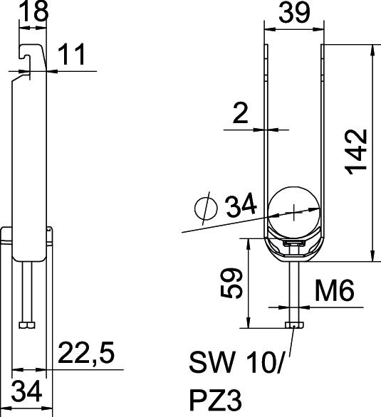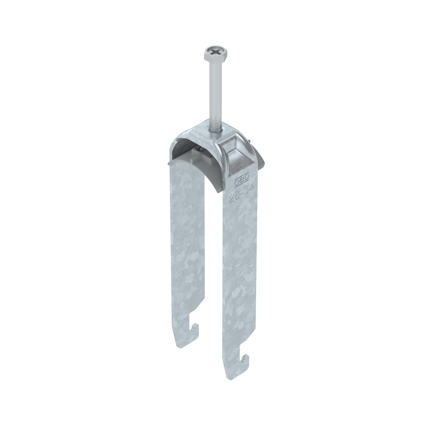 Obejma kabłąkowa plastikowa ze stopką w kształcie U, wanienka dociskowa wykonana z polipropylenu. Do pionowego i poziomego montażu 3 pojedynczych kabli na szynach o profilu C. Szerokość szczeliny 18-22 mm Z gwintem jednoskokowym na wanience dociskowej, łeb sześciokątny uniwersalny SW10, z rowkiem i łbem krzyżakowym Nadaje się do montażu wewnątrz i na zewnątrz Paczki kabli powinny być oddzielone dodatkową wanienką dociskową Zalecamy użycie wanienki dociskowej