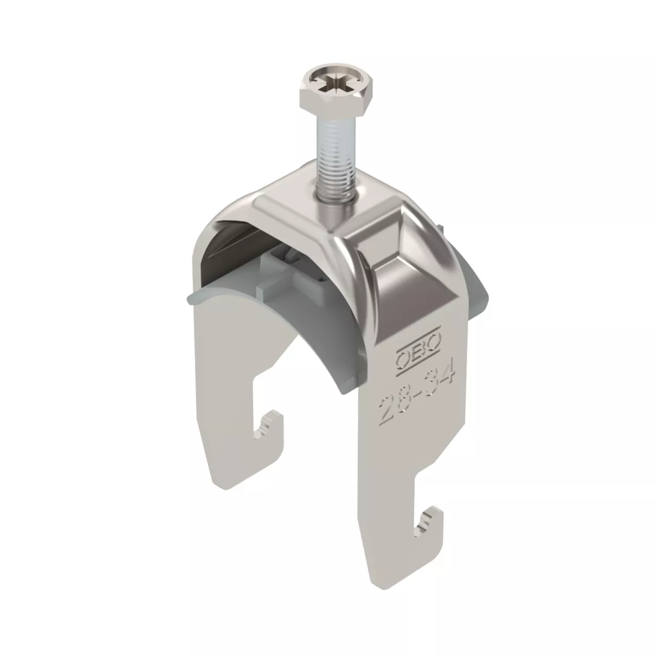 Obejma kabłąkowa plastikowa ze stopką w kształcie U, wanienka dociskowa wykonana z polipropylenu. Do pionowego i poziomego montażu pojedynczego kabla na szynie o profilu C. Szerokość szczeliny 18-22 mm Z gwintem jednoskokowym na wanience dociskowej, łeb sześciokątny uniwersalny SW10, z rowkiem i łbem krzyżakowym Nadaje się do montażu wewnątrz i na zewnątrz Zalecamy użycie wanienki dociskowej