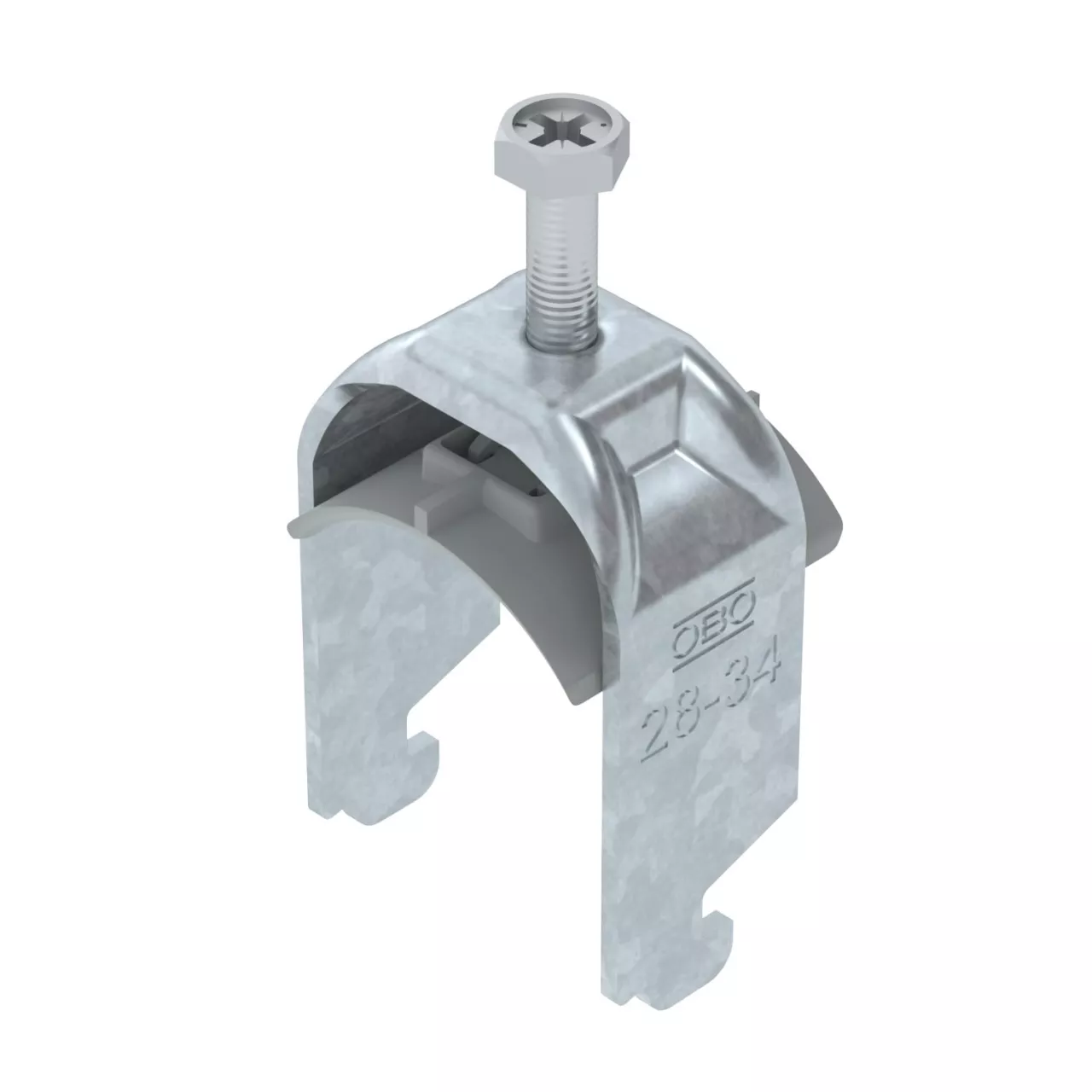 Obejma kabłąkowa, ze stopką typu N, plastikowa wanienka dociskowa wykonana z polipropylenu. Do pionowego i poziomego montażu pojedynczego kabla na szynie o profilu C. Do szczeliny o szerokości 11 - 12 mm. Z gwintem jednoskokowym na wanience dociskowej, łeb sześciokątny uniwersalny SW10, z rowkiem i łbem krzyżakowym Nadaje się do montażu wewnątrz i na zewnątrz Zalecamy użycie wanienki dociskowej