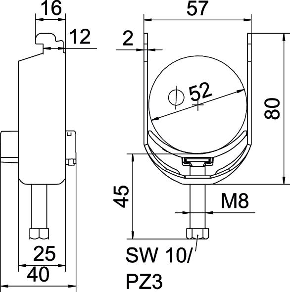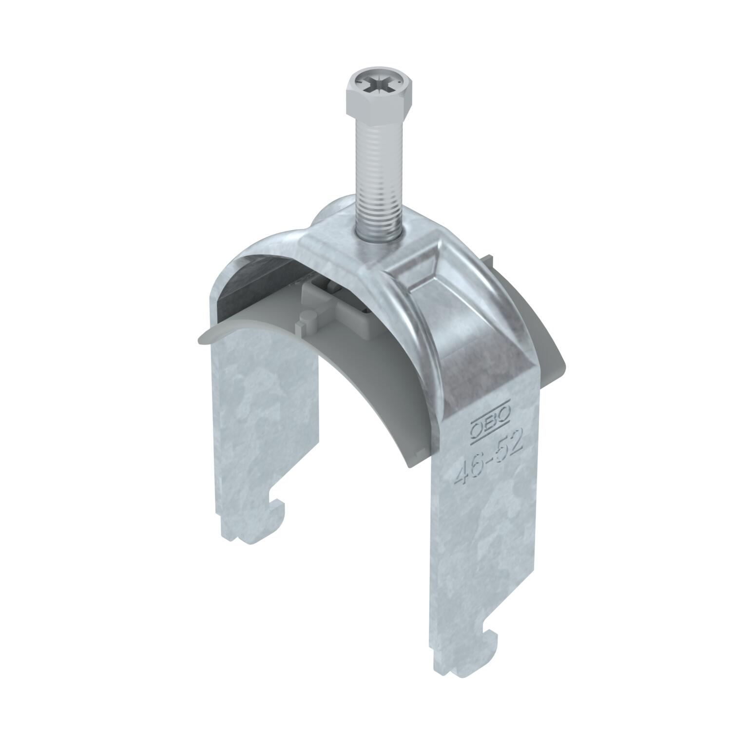 Obejma kabłąkowa, ze stopką typu N, plastikowa wanienka dociskowa wykonana z polipropylenu. Do pionowego i poziomego montażu pojedynczego kabla na szynie o profilu C. Do szczeliny o szerokości 11 - 12 mm. Z gwintem jednoskokowym na wanience dociskowej, łeb sześciokątny uniwersalny SW10, z rowkiem i łbem krzyżakowym Nadaje się do montażu wewnątrz i na zewnątrz Zalecamy użycie wanienki dociskowej