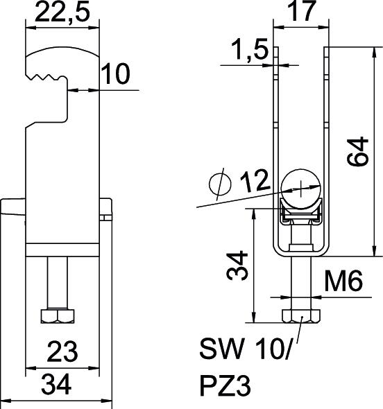 Obejma kabłąkowa, ze stopką typu F, plastikowa wanienka dociskowa wykonana z polipropylenu. Do pionowego i poziomego montażu 2 pojedynczych kabli na płaskowniku. Z gwintem jednoskokowym na wanience dociskowej, łeb sześciokątny uniwersalny SW10, z rowkiem i łbem krzyżakowym Nadaje się do montażu wewnątrz i na zewnątrz Paczki kabli powinny być oddzielone dodatkową wanienką dociskową Zalecamy użycie wanienki dociskowej