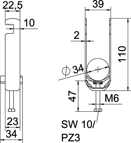Obejma kabłąkowa, ze stopką typu F, plastikowa wanienka dociskowa wykonana z polipropylenu. Do pionowego i poziomego montażu 2 pojedynczych kabli na płaskowniku. Z gwintem jednoskokowym na wanience dociskowej, łeb sześciokątny uniwersalny SW10, z rowkiem i łbem krzyżakowym Nadaje się do montażu wewnątrz i na zewnątrz Paczki kabli powinny być oddzielone dodatkową wanienką dociskową Zalecamy użycie wanienki dociskowej