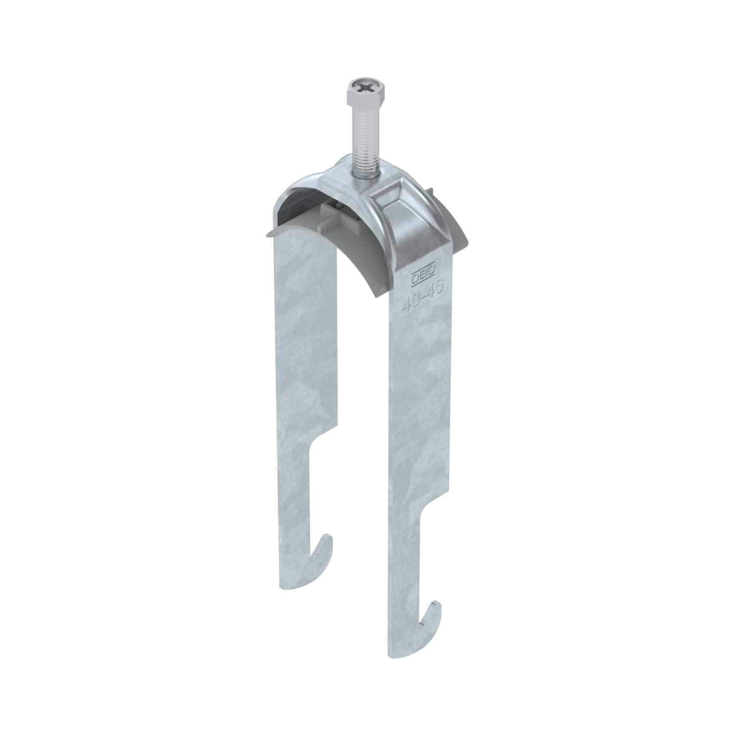 Obejma kabłąkowa ze stopką typu W, plastikowa wanienka dociskowa wykonana z polipropylenu Do pionowego i poziomego montażu dwóch przewodów na kątownikach do < 40 mm. Z gwintem jednoskokowym na wanience dociskowej, łeb sześciokątny uniwersalny SW10, z rowkiem i łbem krzyżakowym Nadaje się do montażu wewnątrz i na zewnątrz Paczki kabli powinny być oddzielone dodatkową wanienką dociskową Zalecamy użycie wanienki dociskowej