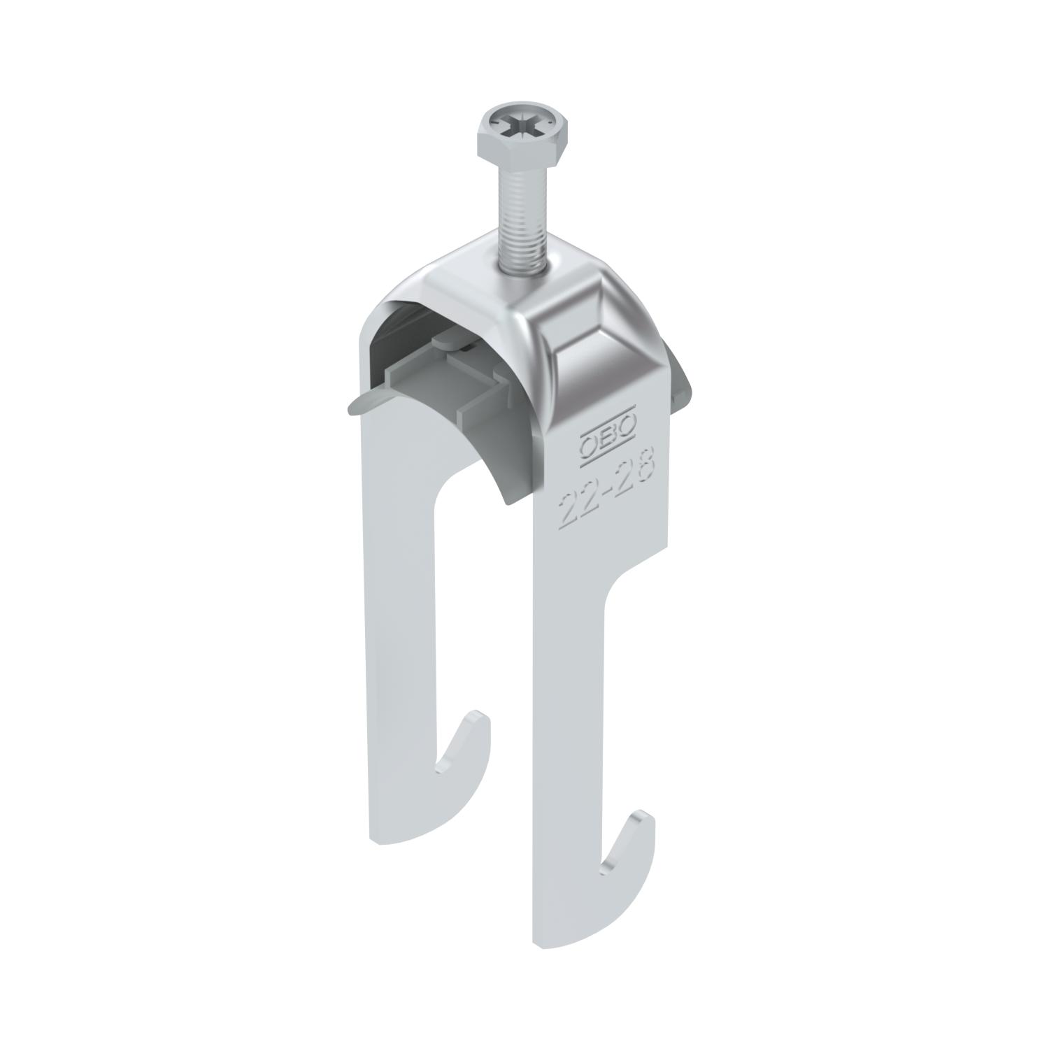 Obejma kabłąkowa ze stopką typu W, plastikowa wanienka dociskowa wykonana z polipropylenu Do pionowego i poziomego montażu 1 pojedynczego kabla na kątownikach do < 40 mm. Z gwintem jednoskokowym na wanience dociskowej, łeb sześciokątny uniwersalny SW10, z rowkiem i łbem krzyżakowym Nadaje się do montażu wewnątrz i na zewnątrz Zalecamy użycie wanienki dociskowej