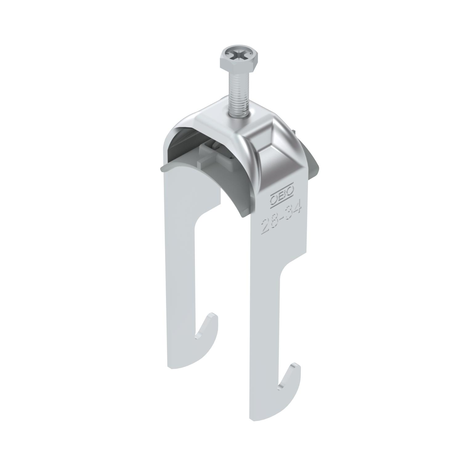 Obejma kabłąkowa ze stopką typu W, plastikowa wanienka dociskowa wykonana z polipropylenu Do pionowego i poziomego montażu 1 pojedynczego kabla na kątownikach do < 40 mm. Z gwintem jednoskokowym na wanience dociskowej, łeb sześciokątny uniwersalny SW10, z rowkiem i łbem krzyżakowym Nadaje się do montażu wewnątrz i na zewnątrz Zalecamy użycie wanienki dociskowej