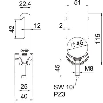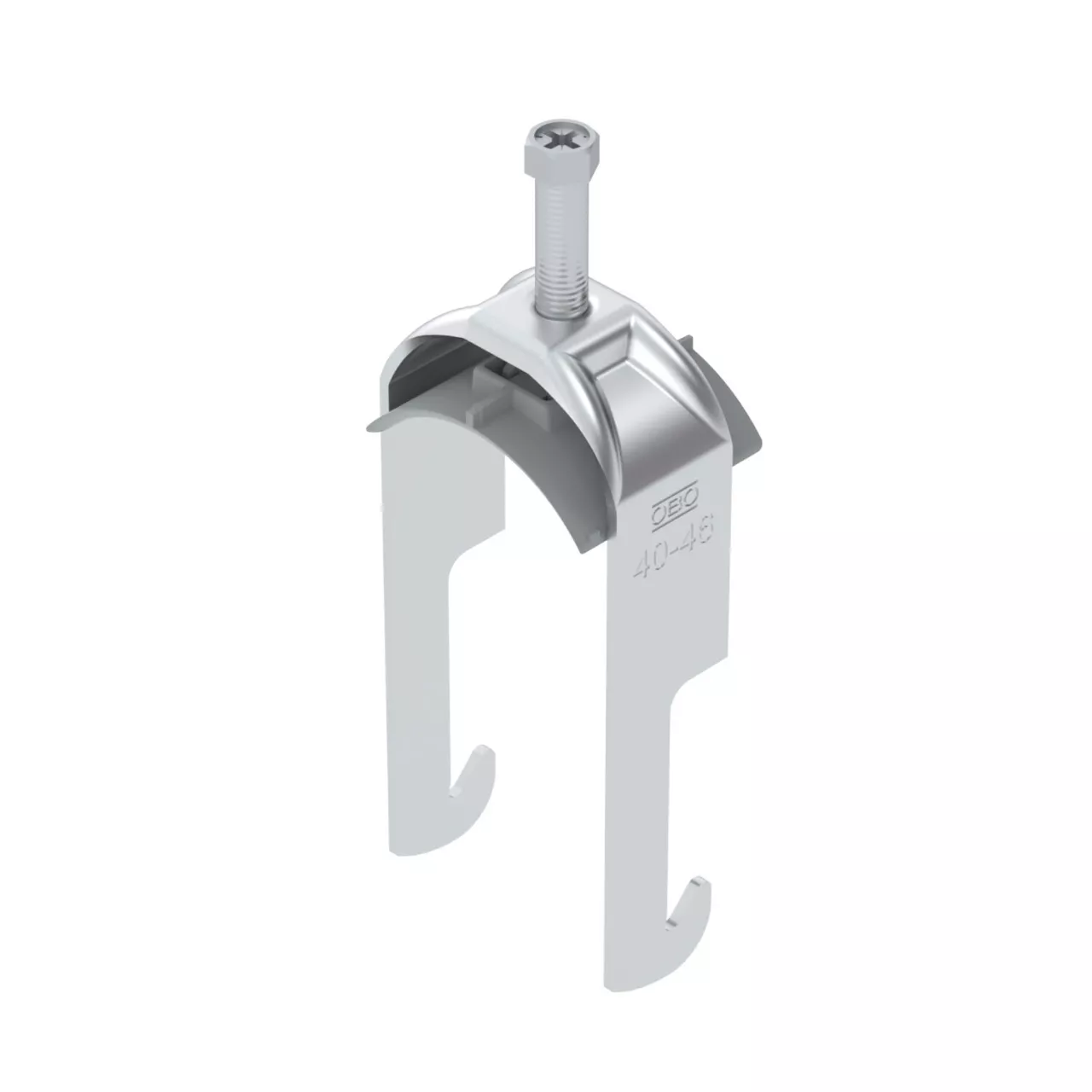 Obejma kabłąkowa ze stopką typu W, plastikowa wanienka dociskowa wykonana z polipropylenu Do pionowego i poziomego montażu 1 pojedynczego kabla na kątownikach do < 40 mm. Z gwintem jednoskokowym na wanience dociskowej, łeb sześciokątny uniwersalny SW10, z rowkiem i łbem krzyżakowym Nadaje się do montażu wewnątrz i na zewnątrz Zalecamy użycie wanienki dociskowej