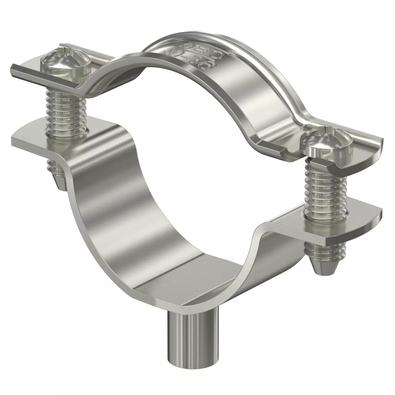 Montaż za pomocą obejmy dystansowej śrubowej. Obejmy dystansowe i obejmy dystansowe śrubowe produkuje się z różnych materiałów: ze stali nierdzewnej V2A, ze stali cynkowanej galwanicznie lub ogniowo a także z aluminium. Mocowanie można wykonać za pomocą kotew wkręcanych lub kołków rozporowych i śrub Sprint.
