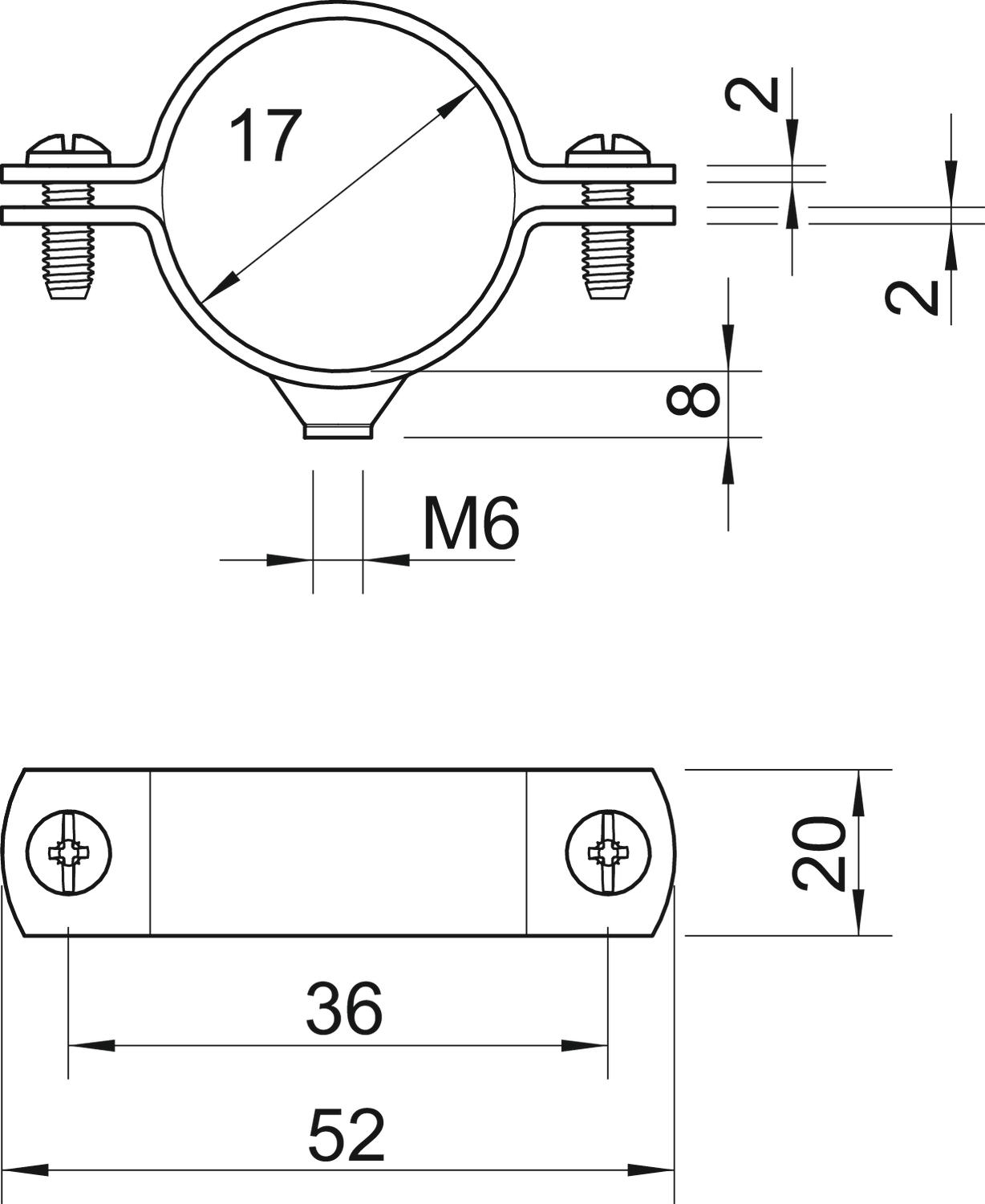 2900WM6 17 FT Obejma dystansowa z przyłączem gwintowanym M6