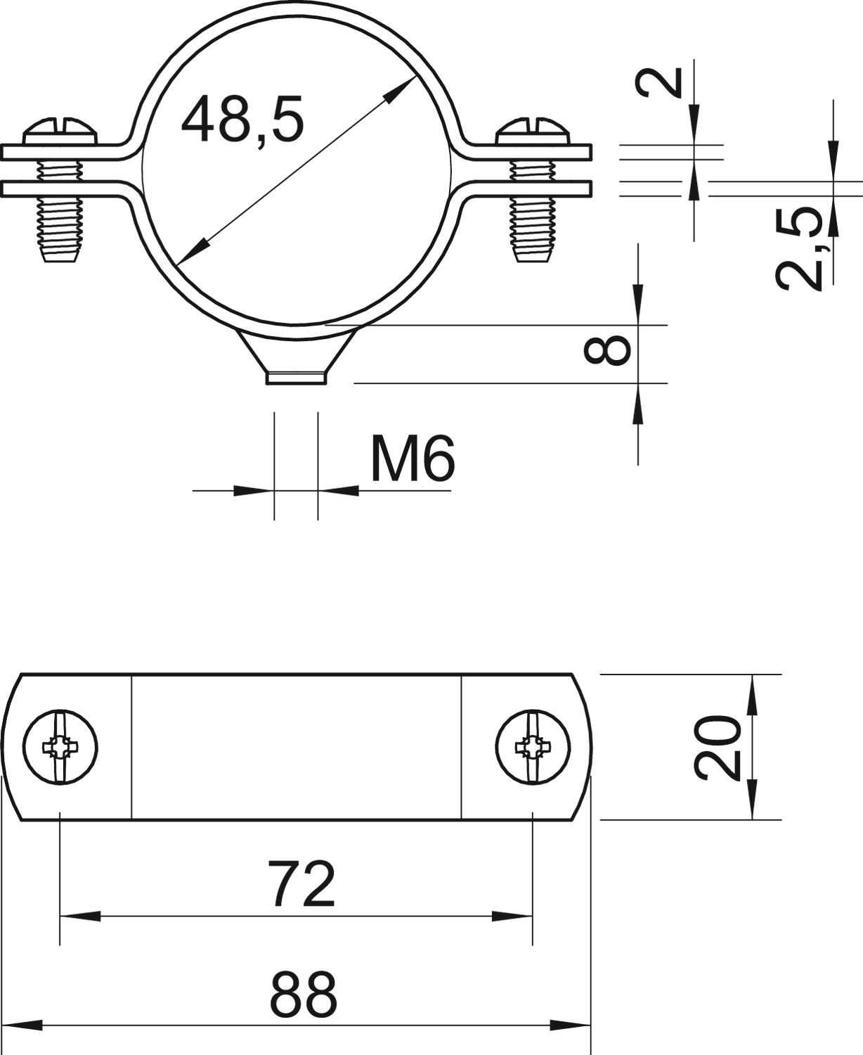 2900WM6 48.5 FT Obejma dystansowa z przyłączem gwintowanym M6