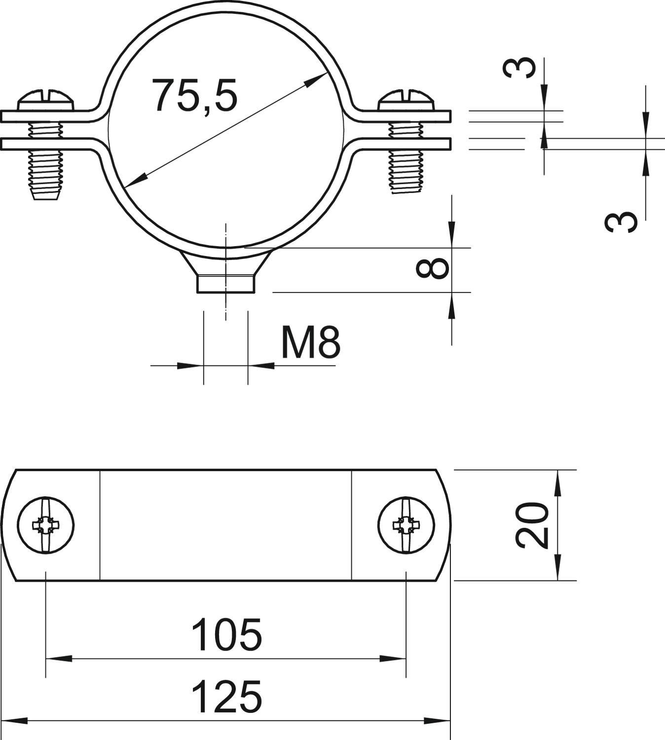 2900WM8 75.5 FT Obejma dystansowa z przyłączem gwintowanym M8