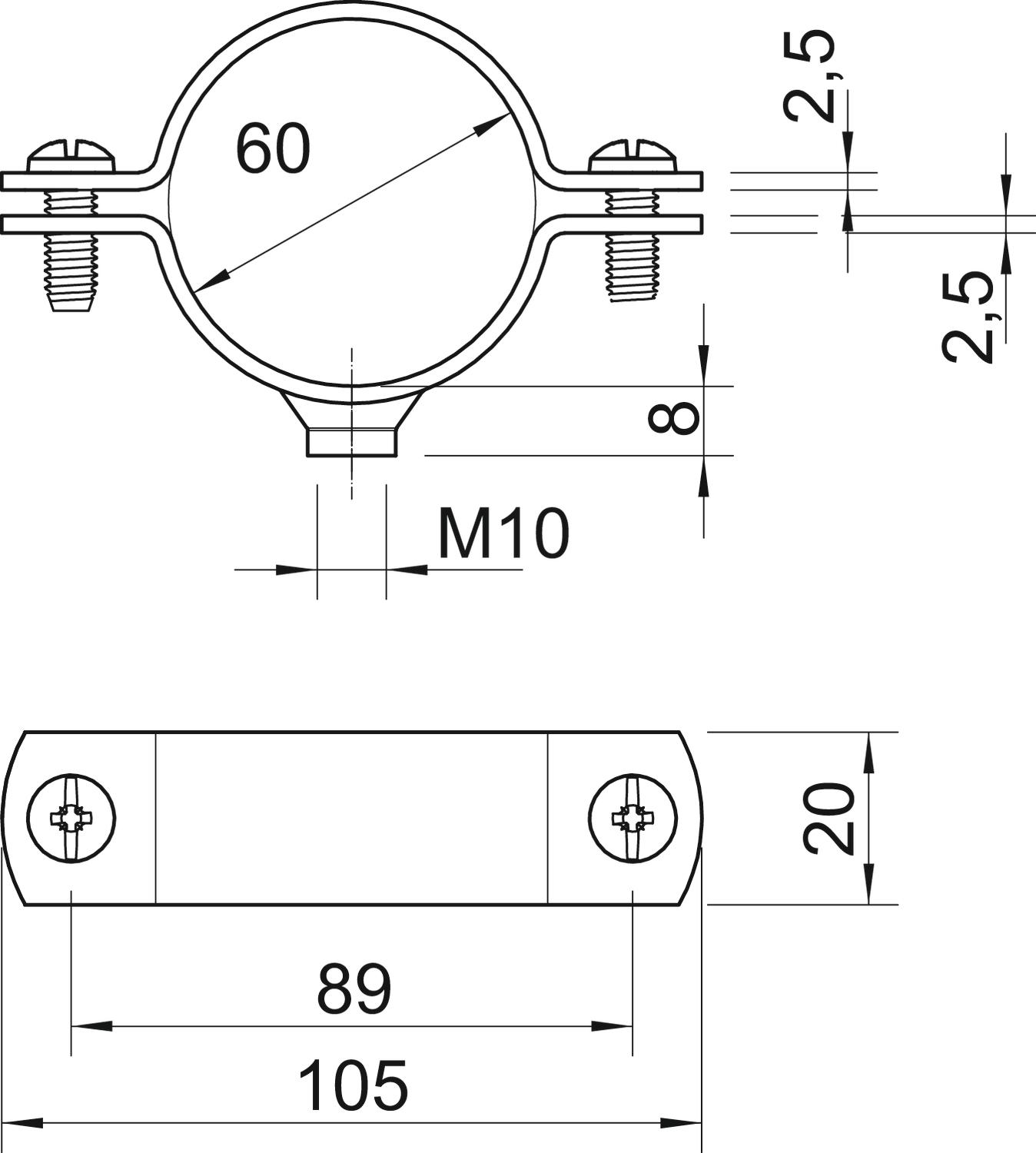 2900WM10 60 FT Obejma dystansowa z przyłączem gwintowanym M10