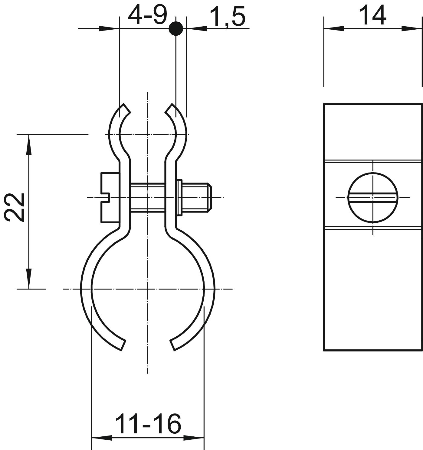 Obejma drutu napinającego do linki 4-9 mm 11-16 mm. Ze śrubą M4x14 z V4A.