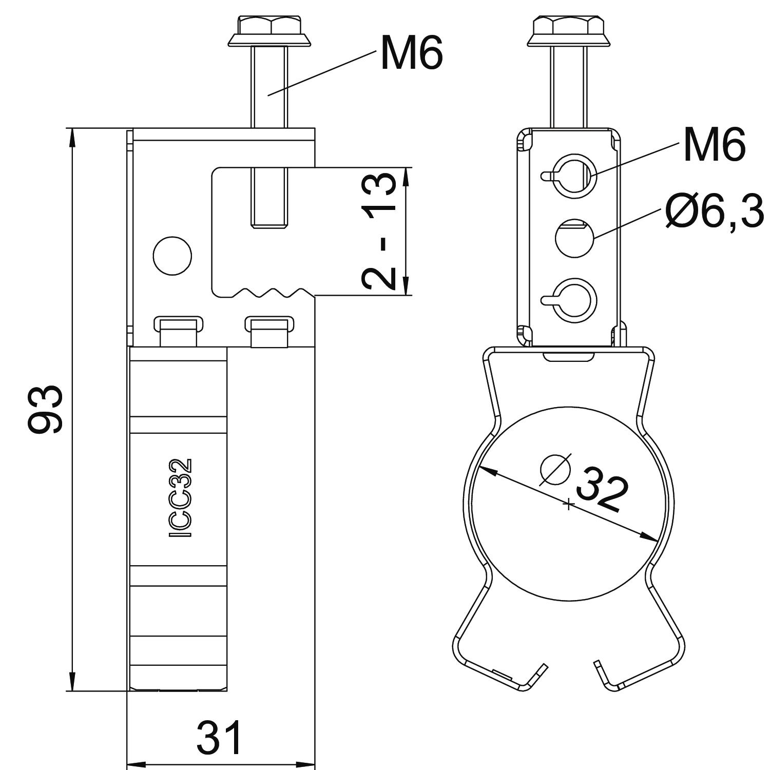 SKS 213 D32 Klamra śrubowa wspornika z uchwytem na rurę D30-32mm