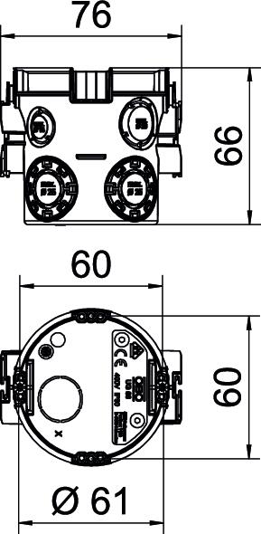 Puszka podtynkowa do stosowania w murze o głębokości zabudowy co najmniej 66 mm.