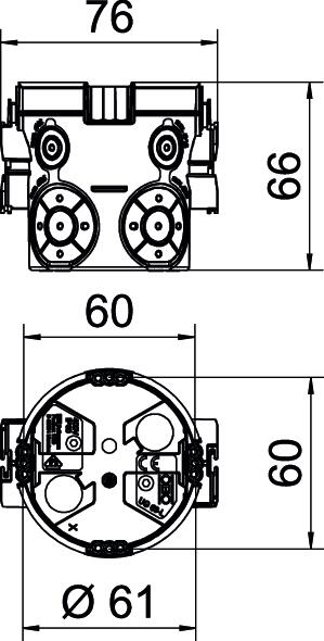 Puszka podtynkowa z hermetycznymi wejściami membranowymi, do stosowania w murze o głębokości zabudowy co najmniej 66 mm.
