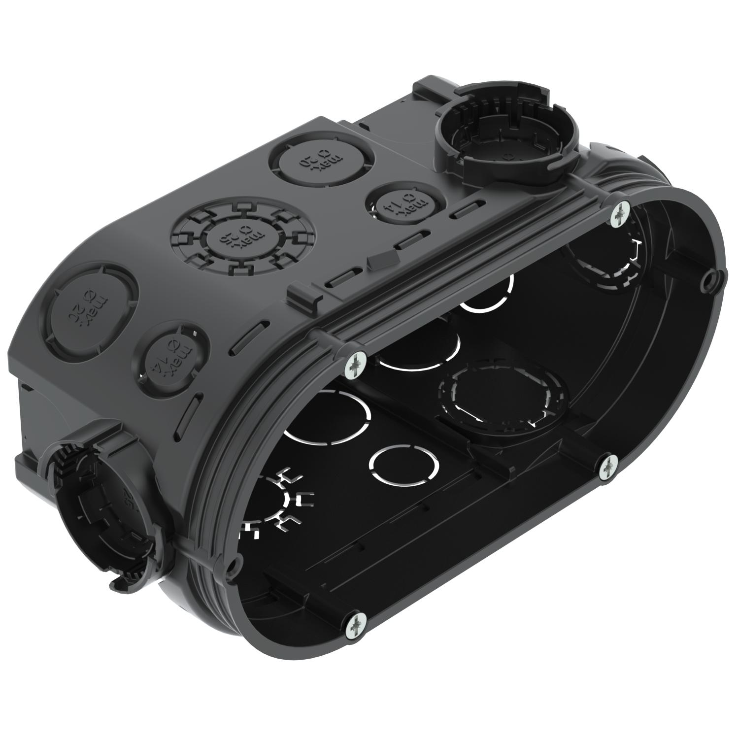 Podwójna puszka podtynkowa do stosowania w murze o głębokości zabudowy co najmniej 66 mm.