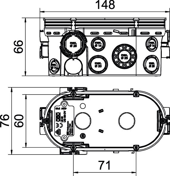 • 6 przepustów rurowych kombinowanych Ø 20 i 25 mm